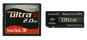 Линейка карт памяти SanDisk Ultra II - самая высокая скорость чтения/записи по тесту iXBT Некоторое время назад свет увидела линейка высокоскоростных карт от SanDisk, а именно Ultra II. Компания подошла к вопросу со всей ответственностью, разработав карты сразу нескольких семейств – CompactFlash, Secure Digital и Memory Stick Pro. Общими для всех карт являются заявленные скорости — 10 Мбайт/с чтение, 9 Мбайт/с запись. Как можно обеспечить столь точное соответствие для карт с разными интерфейсами? Скорее всего, речь идет о внутренней скорости передачи данных, внешняя же несколько скромнее, что мы и получили при тестировании карт CompactFlash и SD (причем результаты были действительно практически одинаковыми, несмотря на разное тестовое оборудование). Но прогресс не стоит на месте — линейка карт продолжает пополняться. Сегодня мы рассмотрим еще двух ее представителей. CompactFlash 2 Гбайт