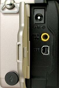 Под ним расположен видео выход. Формат сигнала NTSC или PAL (в зависимости от региона, где была продана камера).