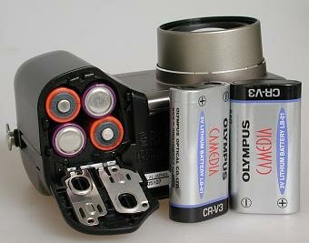 Камера может быть запитана от литиевых батарей Olympus CR-V3 (имеются в комплекте), или от обычных батарей типа АА: NiMH, щелочных, литиевых или NiCd.