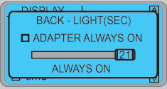Always On: Подсветка загорается при нажатии на любую кнопку, на время, установленное пользователем. При установке 21 сек. - подсветка будет работать все время.