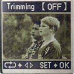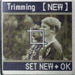 Опция "Trimming" позволяет обрезать выбранную фотографию, если это необходимо. Когда эта функция активирована, на экране появляется соответствующая рамка. При помощи стрелок выбирается площадь и положение обрезки. После того как выбрана нужная площадь, следует нажать кнопку "OK". (Если информация об обрезке заложена в DPOF, то принтер ее автоматически воспримет. Это можно отменить выбрав опцию "New" и нажав кнопку "ОК").
