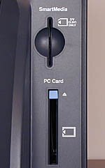 Слоты для карт памяти SmartMedia и PC Card расположены с правой стороны от крышки. Слот PC Card оснащен кнопкой выбрасывания для удобного извлечения карты памяти.